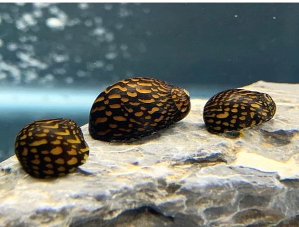 Batik nerite snails are also similar to zebra nerites, but these species have yellow dots on their shell, instead of stripes. Similar to zebra snails, most batik nerites look the same.