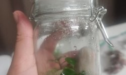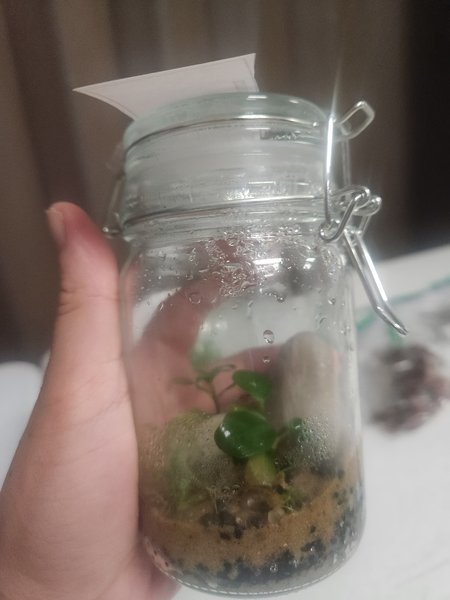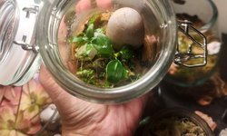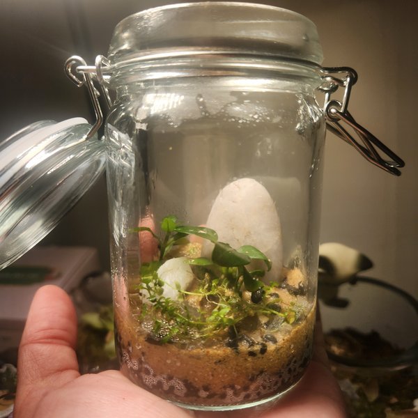 Small scape with anubias nana petite, Monte Carlo, and Sturogyne repens. Can be kept emmersed high humidity or submerged.1