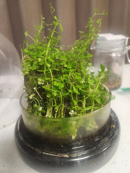 Cloche that can be grown as a terrarium or small paludarium (fill the bottom glass up to the rim). Has hydrocoytle tripartita, bacopa monneri, Monte Carlo, and anubias petite. I left it untrimmed so the buyer can have extra hydrocoytle cuttings