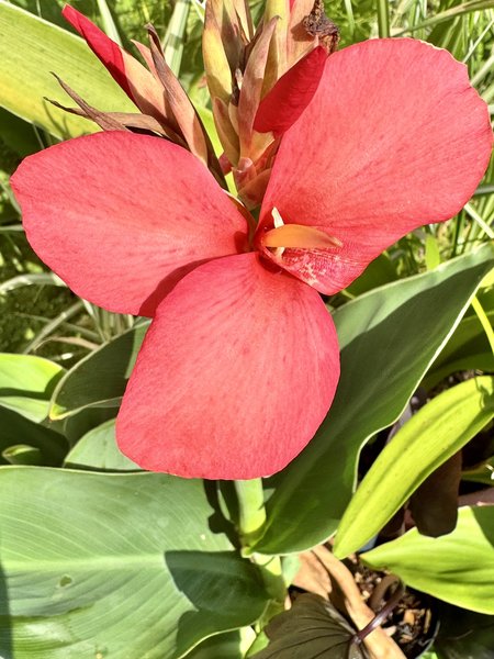 This isn’t a regular color you see very often. This is a beautiful rose colored Canna lily. Perfect for the pond and container ponds. If planted in the ground, it can be wintered over with a few inches of mulch on top. You can also dig them out of the soil and save the bulbs in paper bags over the winter and replant them in the spring.