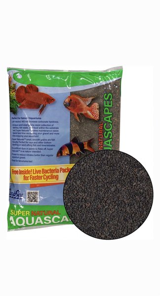 Fine black sand substrate with natural look; ideal for planted tanks, shrimp, and bottom-dwelling fish.
