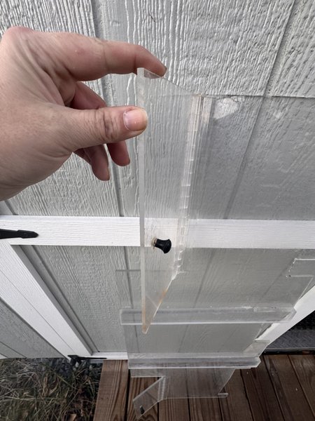 One custom acrylic lid with cut outs for equipment, and two doors for feeding and cleaning. It is solid all one piece half inch acrylic.
