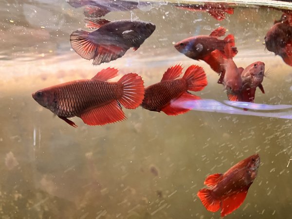 8 female bettas raised together from the same spawn, making them a very harmonious group!