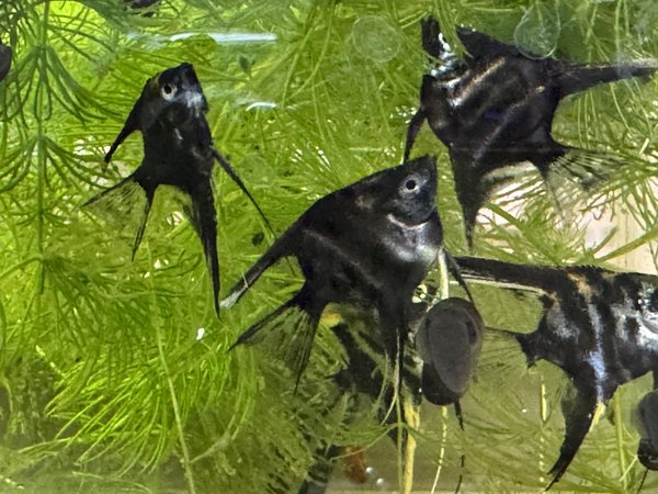 4 young angel fish. Dime size.