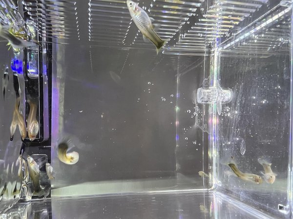 A group of 10 healthy, active juvenile guppies from my homebred colony. These young guppies are a mix of fancy and snakeskin types, with a variety of tail shapes and developing colors. Raised in a community tank on quality flake, baby brine, and vegetable-based foods. (Actual pic of the lot)