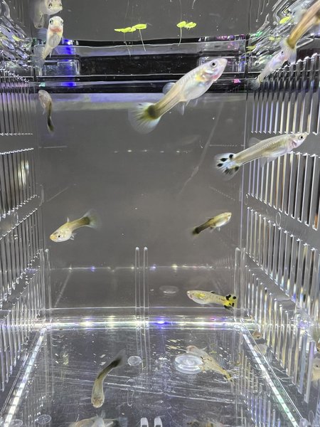 A group of 10 healthy, active juvenile guppies from my homebred colony. These young guppies are a mix of fancy and snakeskin types, with a variety of tail shapes and developing colors. Raised in a community tank on quality flake, baby brine, and vegetable-based foods. (Actual pic of the lot)