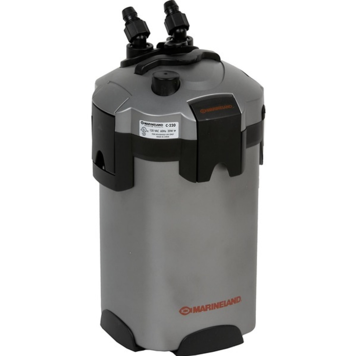 One used Marineland C220 canister filter with media. Tested with no leaks and with hoses.