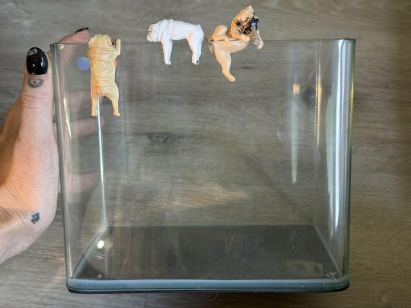 Mini glass rimless aquarium - 0.75 gallon / - the little dogs are removable! They do come with the tank.