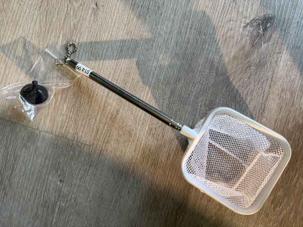 This net comes with a suction cup and doubles as a mini holding / breeder net for nano fish or shrimp.