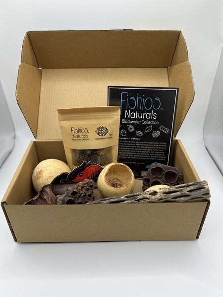 The Breeder Mix contains botanicals chosen to encourage natural spawning behaviours. Each box includes five cave-style pods ideal for small plecos, apistogrammas, and other nano species that seek enclosed spaces to breed. Three medium lotus pods, a piece of cholla wood, and a bag of cones, caps, or pods complete the blend-offering both shelter and aesthetic appeal. This balanced mix is perfect for aquarists looking to enhance breeding setups or add purposeful structure to display tanks.