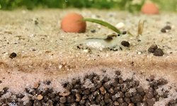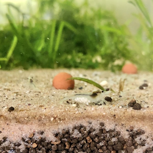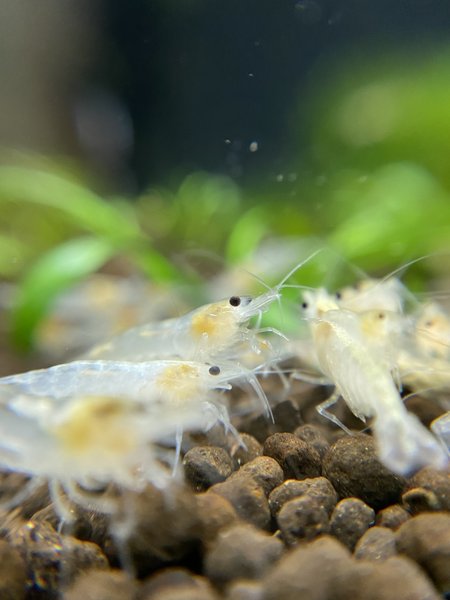 Snowball shrimp are an elegant white variant of cherry shrimp. They’re called snowball shrimp, not because they have a white body but because their eggs are a brilliant white and resemble snowballs, highly visible in their undercarriage when they are “berried” (shrimp term for holding eggs)