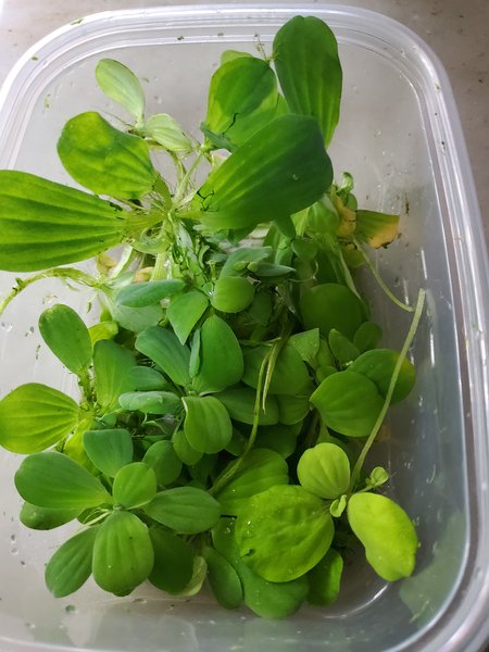Bag of Water Lettuce probably enough to cover a 10 gallon tank.