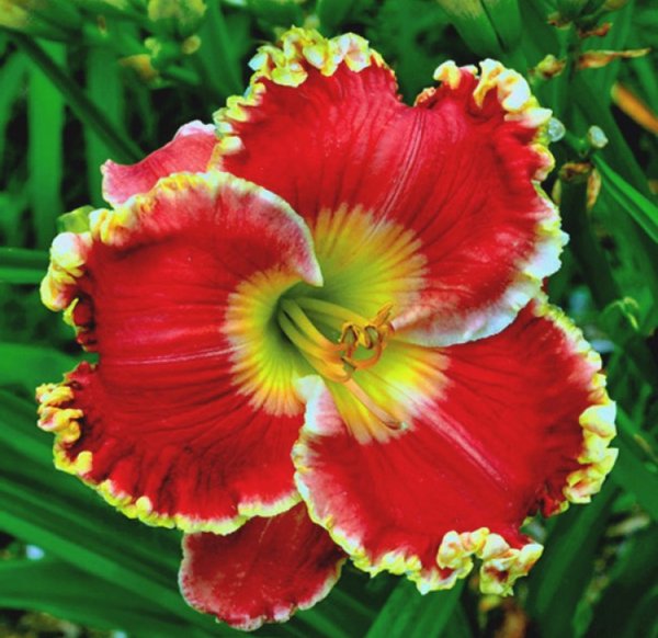 This is a winter hardy daylily. These can also be grown out of a pond without being planted in a pot. Great for small container ponds.