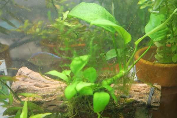 Anubias Nangi (Anubias barteri 'Nana' x Anubias gilletii) on Cholla Wood - An easy-to-grow, low-light-loving, Anubias hybrid with elongated, pointed leaves. - 1 plant / 1 solid piece of Cholla Wood