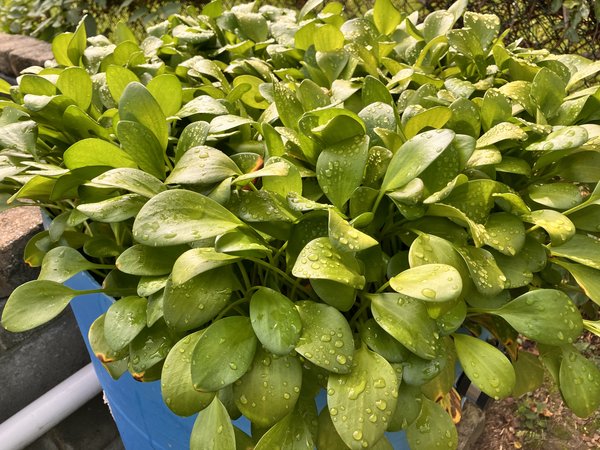 This frogbit is HUGE! Grown outside this summer. Acts as a natural filter for your aquarium. The long, fuzzy roots offer hiding places for fish and shrimp.