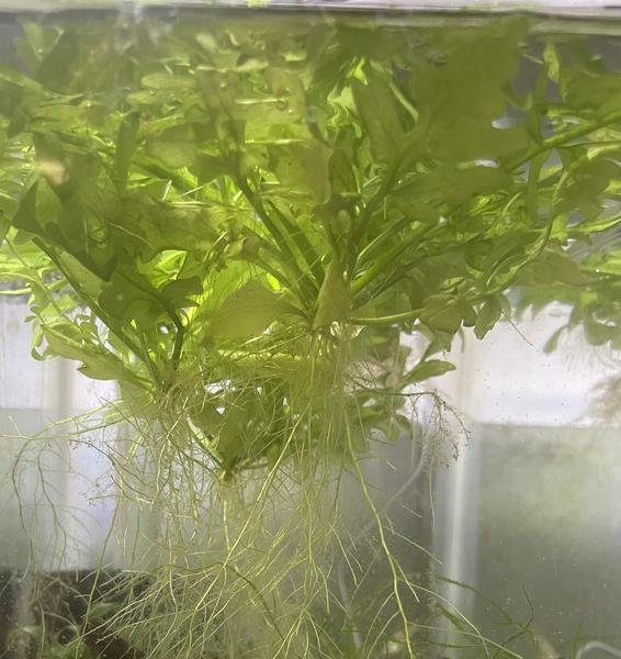 Water Sprite or Indian Fern (Ceratopteris cornuta) is a stouter species than the more common species (thalictroides.). It can be floated for fry habitat or to provide shady spots or it can be planted in the substrate as a filler. A true fern it is easily propagated. It requires no co2 or special lighting.