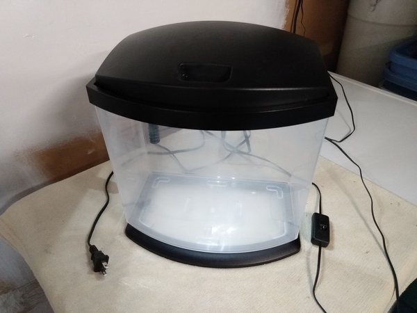 2.5 Gallon plastic aquariumLED lights in lidPump and filter