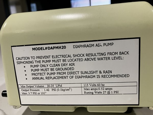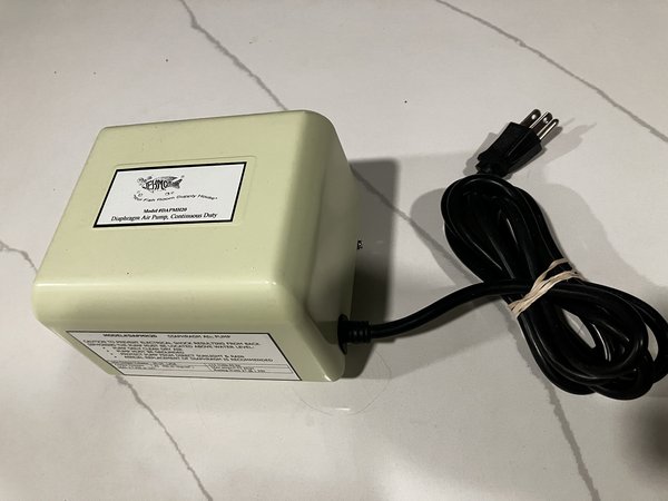 Brand new JEHMCO air pump. JEHMCO pumps are known for their high-quality manufacturing, silent operations and extreme longevity – plug it in and forget about it. See link for specifications. A minimum bid of $75 has been set.