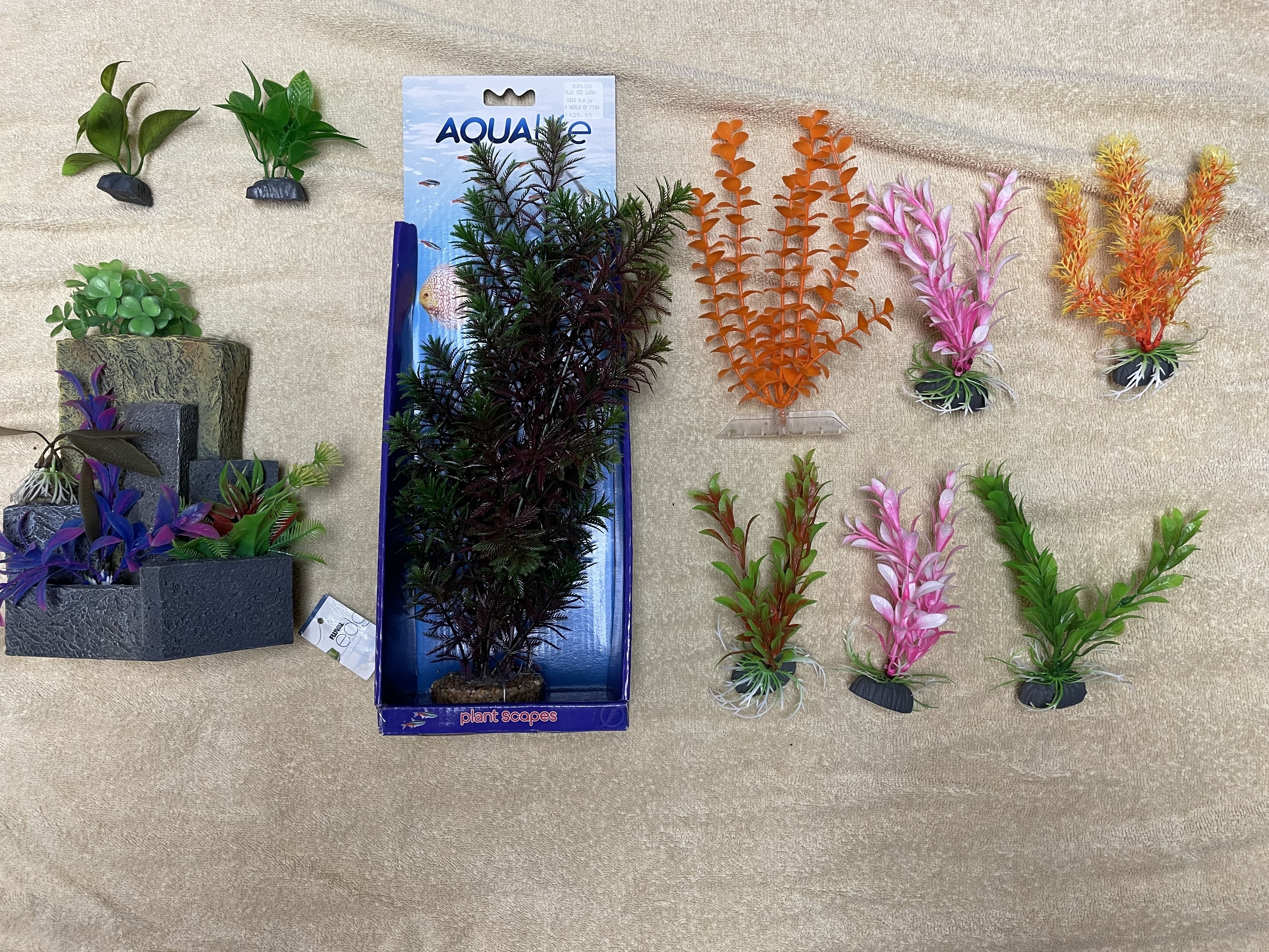 Extra fake plants and a decoration. Included: - 8 small fake plants - 1 New Aqualife 14" fake plant - 1 New Fluval decoration