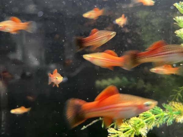 Three pineapple swordtails, 6 months old.