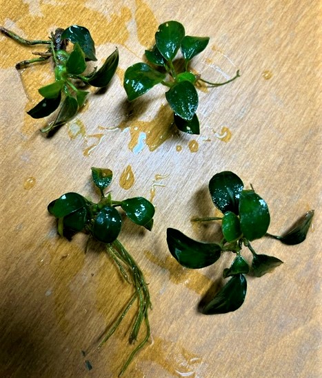 Lot includes 4 Anubias nana petite . Very popular in the hobby .