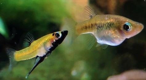These are by far the nicer of the metallicus species . Much nicer looking than the plain old yellows . The pic shown is of our fish not some photoshopped internet pics . Fun little livebearer that does very well in coller water tanks . Since bills are going up, it is nice NOT TO HAVE TO HEAT your tank . ONE PAIR