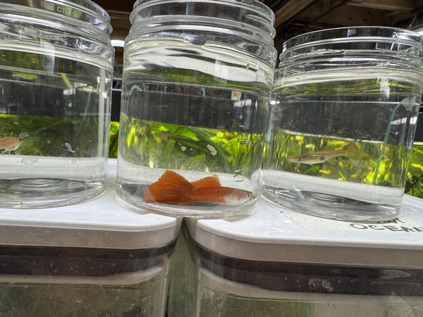 Trio of IFGA standard guppies. Male with two femalesĀ