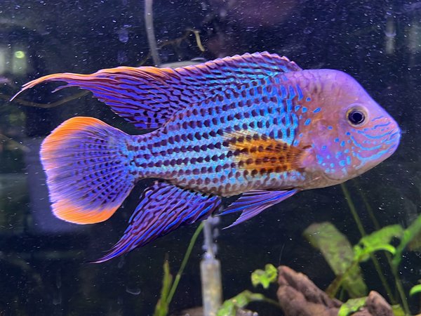 Beautiful South American cichlid commonlyl known as 'Gold Saum' sometimes called the false 'Green Terror'