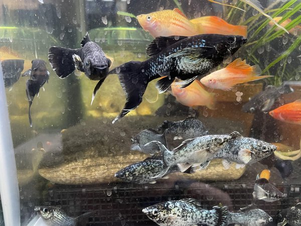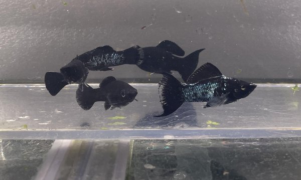 20 juvenile of black and electric blue mollies. Mix of sailfins and sailfin lyretails. Descended from my electric blue molly line, which was originally imported from Indonesia. Rare in the USA.