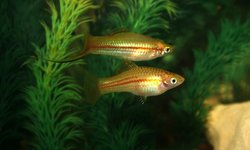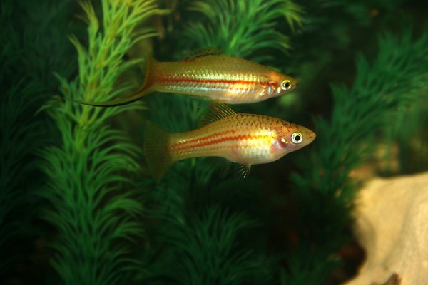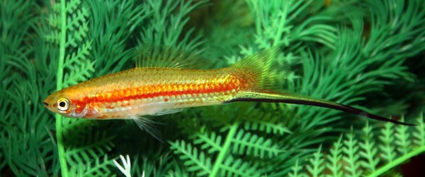 A group of juvenile Yellow Lightning Swordtails. A strain created by a member of the Norwalk Club. Very hardy.