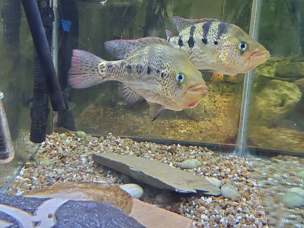 2 adult bay snook. Showing spawning behavior but no eggs yet. Larger is a full 12" + and the smaller is more than 10"