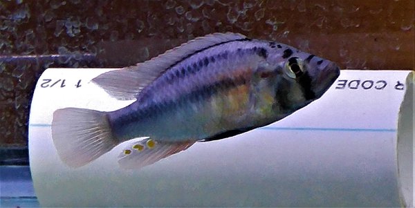 2M 4F, 1.25-1.75", just starting to breed. Very rare. The strain was collected by Adrienne Indermauer in the Kalamo River near L. Tanganyika and brought over by him when he visited a few years ago. I've had bad luck getting it established in the hobby, so if you buy these, breed them a lot and distribute.