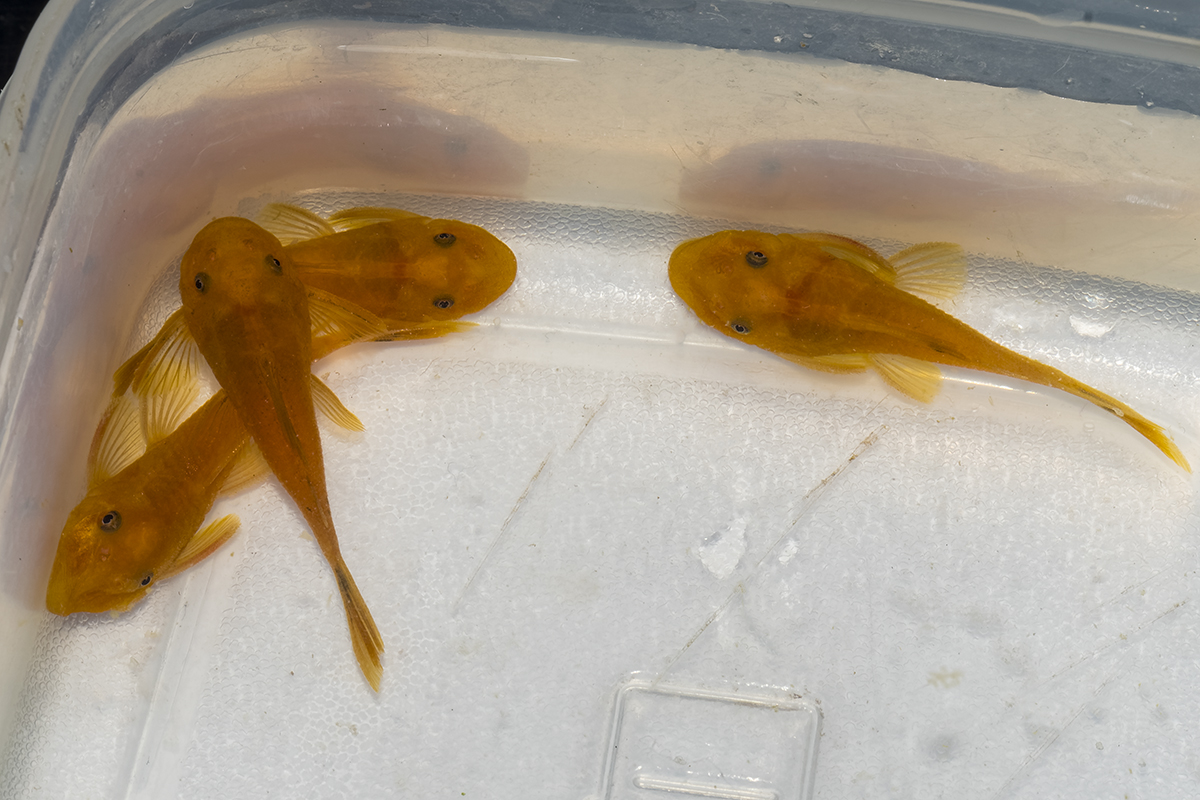 Four 1.5" SF Super Red Bushynose Plecos. The picture may not be the same fish you receive, however, the fish you get will be very similar and from the same group of fry.