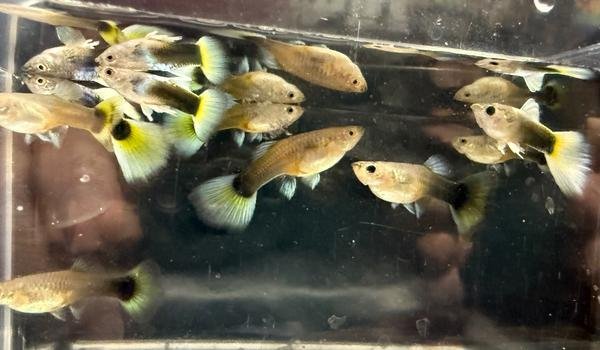 The Half Black Pastel Yellow guppy is striking. While pastels, these are the most yellow individuals I have. All the HB Pastel strains breed young, from 3.5 to 6 months however, after that age while the males can still reproduce, many of the females can't produce viable fry much beyond 7 months. I don't care. I breed them young and then enjoy the beauty and stately mature female or Male with their large body and colorful dorsal and caudal fins. These large beauties allowed me to win the IFGA 2024 Half Black Female class and contributed to me winning the 2024 International Fancy Guppy Association's (IFGA) Grand Overall Female Championship. I'll try to post some better photos on the other lots to really show off their beauty.