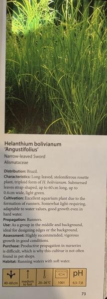 Tall grass like plant. The leaves are narrower than Italian Val (similar width to Val Nana), but grow to about 2 tall. No need to trim the tops like vals often need. Great for nature aquaiums.