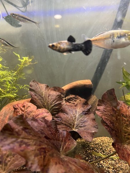 3 black/orange male mollies. Cross bred with pandas. Very successful at breeding but can be nippy.