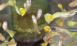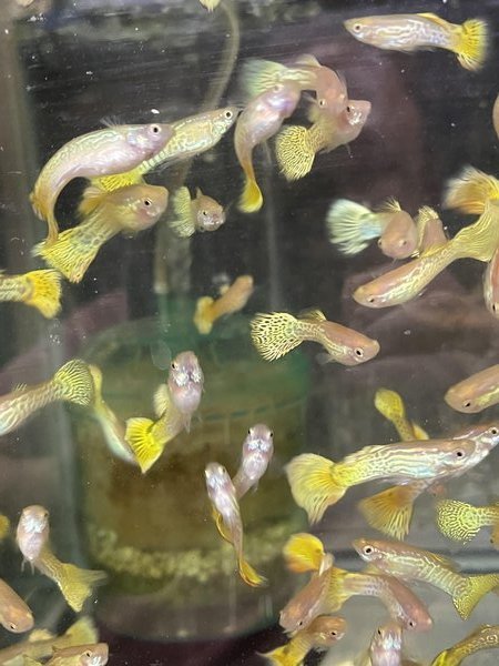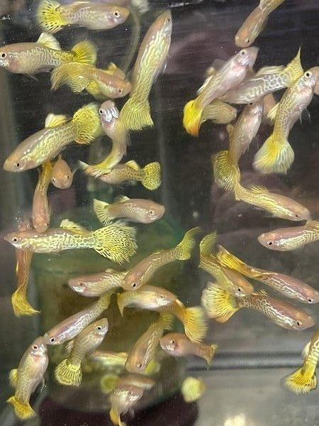 2 pairs (2 males + 2 females) of Yellow Snakeskin Guppies