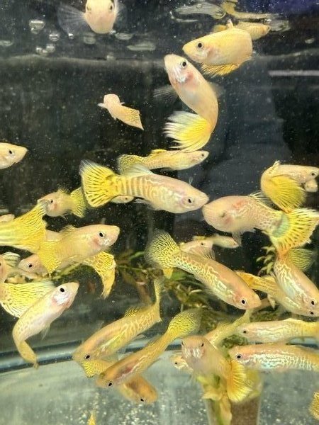 2 pairs (2 males + 2 females) of Yellow Snakeskin Guppies