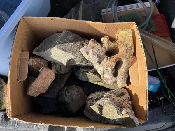 These are flats slate rocks. Great for making hide outs for cichlids. There are a few other odd ball ticks to help make structures