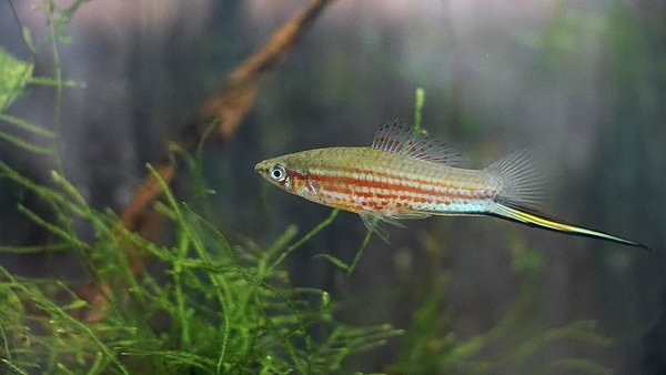 A group of 6 juvenile unsexed Xiphophorus mayae, born 11/26/24.