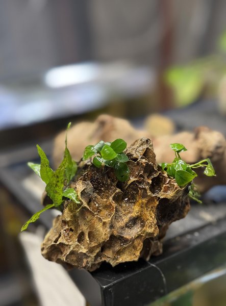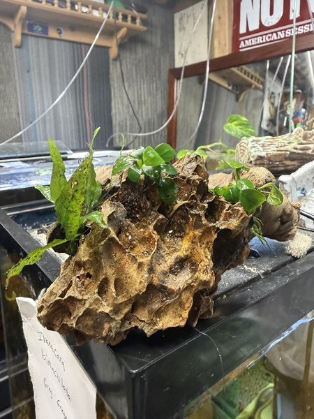 Nice shaped dragon stone with two Anubis and one Java fern connected to it.