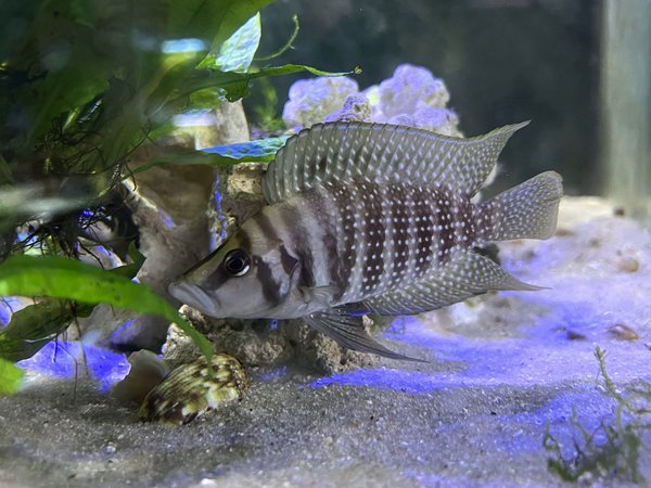 Adult female wild caught A. calvus 'Lupota' imported by Anthony Stissi (SI Cichlids), one of 4 I purchased earlier this year. Of the 4 a breeding pair formed and I'm selling the other 2 to free up tank space. Selling them separately because although Anthony vented them to confirm two pairs the remaining 'pair' tolerate one another but have not paired off.