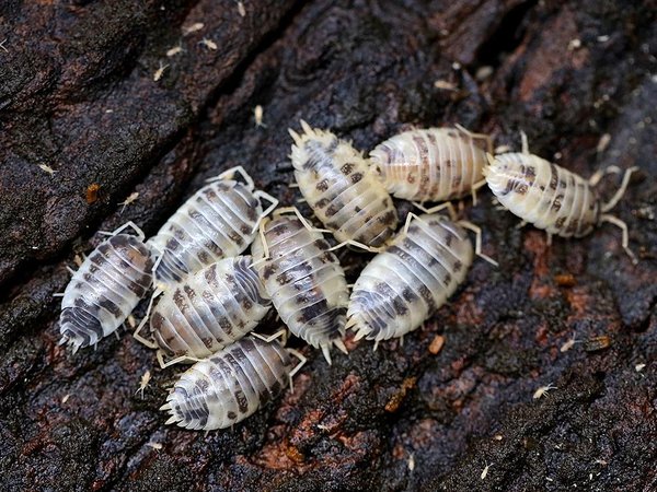 Porcellio laevis, common name Dairy Cow isopod. Easy to keep as terrarium pets. Not aquatic. They eat dried leaves, decaying wood, fish food, and bit of carrot and fruit. for more care information: https://richardsinverts-store.com/products/porcellio-laevis-dairy-cow?_pos=1&_sid=c2da826b8&_ss=r