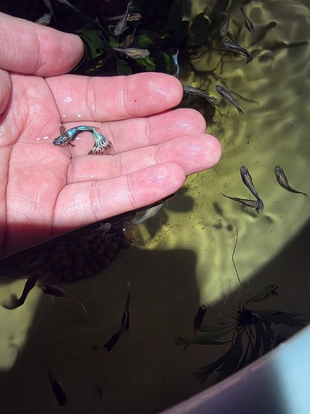 A breeding trio of metallic fancy guppy