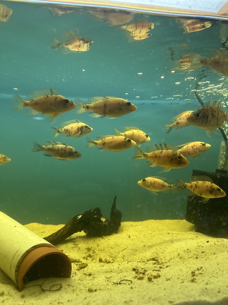 2 each female OB peacock cichlids between 2.5” and 3.5 “
