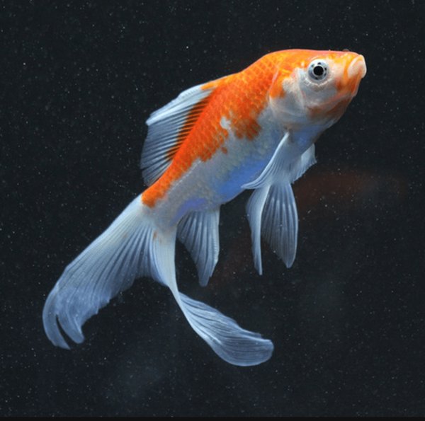 Vibrant orange-and-white Sarasa comet goldfish with graceful flowing tail. Great for outside all years long. Helps control algae.