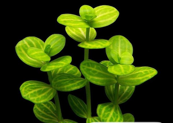 This is an uncommon species, not seen very often in the hobby. Resembles a variegated Bacopa. Does well in low or highlight, but the stronger the light the higher the variegation will be.