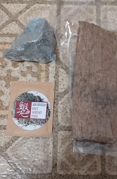 *Shrimp food packette: Veg protein extract, spirulina algae, kelp, mixed grains, fruit, chitosan (plant extract), Probiotics, Minerals, and Vitamins