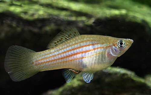 The Mayan swordtail (Xiphophorus mayae) is a striking and active livebearer native to the freshwater streams of Guatemala and Honduras, prized in the aquarium hobby for its vivid coloration and elegant sword-like tail extension in males. Males can grow up to about 2.8 inches (7.2 cm), while females are typically a bit larger and more robust in body shape. These fish display iridescent green or bronze bodies often accented by horizontal red or orange stripes and a sharp, black-edged sword on the males' tails. In the aquarium, X. mayae thrives in well-filtered tanks with moderate flow, and ideal water parameters include a temperature range of 72–79°F (22–26°C), a pH between 7.0 and 8.0, and moderately hard water. They are peaceful and social fish, making them well-suited for community aquariums with similarly sized, non-aggressive tankmates. Like other livebearers, they breed readily in captivity, with females giving birth to free-swimming fry after a gestation period of about 28 days. Providing plenty of cover, such as plants and rocks, helps protect fry and enhances the comfort of the adults. Their colorful presence, hardy nature, and dynamic swimming behavior make the Mayan swordtail a lively and attractive choice for freshwater enthusiasts.