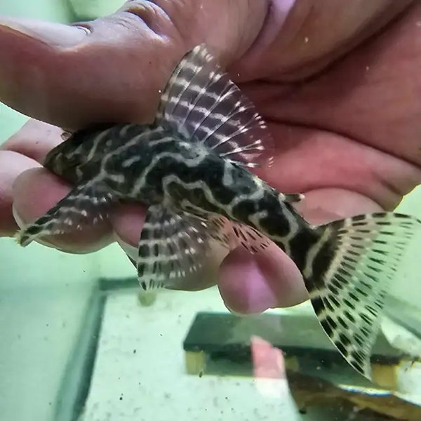 The Mega Clown Pleco is mostly nocturnal but becomes active during the day in aquariums with ample driftwood, rocks, and hiding spots. It doesn’t consume wood like some plecos but may benefit from supplementary wood or bio-film. It won't harm plants and is not an effective algae eater. Feed it meaty, insect-based foods (e.g., bloodworms or pellets that are higher in protein). Some fresh vegetables like peas and cucumber could be offered.
